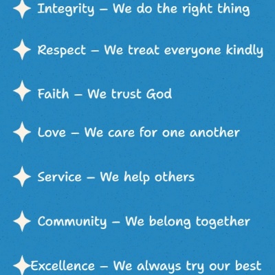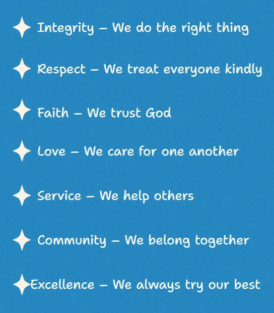 We invite you to join our community, where we celebrate each child's unique journey and encourage them to thrive through the virtues of faith, service, love, integrity, respect, community and excellence . Together, let us cultivate a culture of love and care that extends beyond the classroom, shaping not only informed minds but also compassionate citizens.