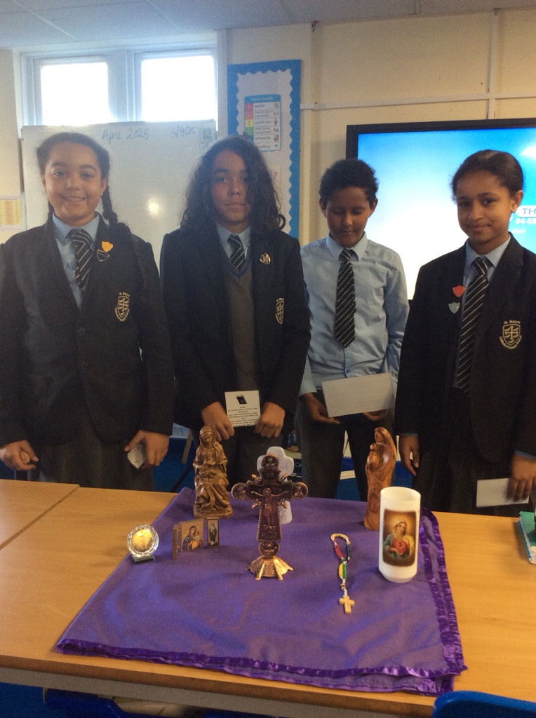 Each November, St Mary’s holds All Souls Collection Worship Sessions to help pupils remember and pray for the faithful departed. Led by staff and supported by our RE Chaplains, each class takes part in reflective prayer, scripture, and gentle discussion about remembrance and hope.