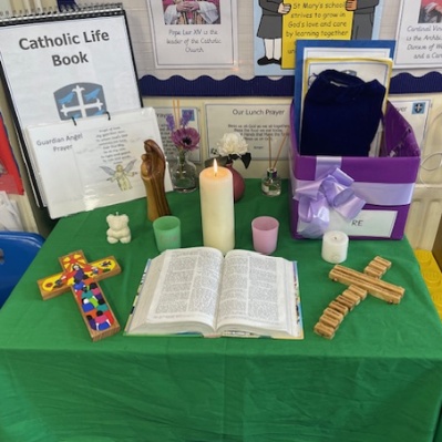 We are proud to foster a deep appreciation for our Catholic faith within our classrooms. Each class is equipped with a dedicated RE altar, a sacred space where students can honour their faith and reflect on their spiritual journey.