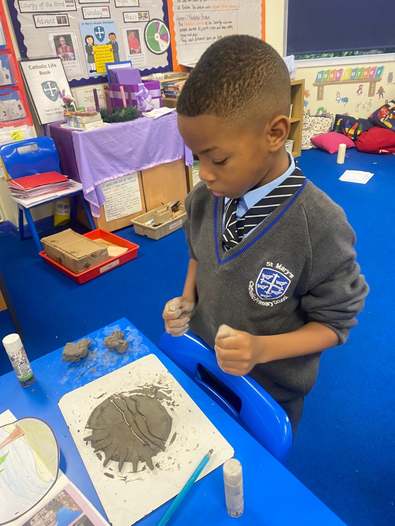 It is our intent at St Mary’s for our art curriculum to provide the pupils throughout the school with a chance to use and build on existing skills they have to create and express themselves through artwork. We value art as part of pupil’s rights to a broad and varied curriculum where they are provided with opportunities to express their individual interests, thoughts and ideas. They will have the opportunity to explore a wide range of materials, artists and mediums whilst developing the skills to work carefully and expressively.